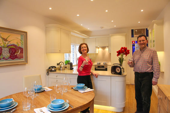 “We also had to consider energy costs; which is why we chose these wonderful low-energy LED lights which can transform the kitchen from a lovely bright light space in the mornings to a softer sophisticated setting in the evening.”
