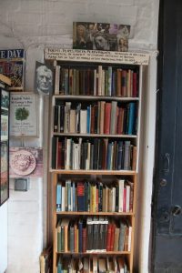 And then there was my personal favourite, Murder and Mayhem, specializing in hmmm, let’s guess! Oh, and the books aren’t only on shelves, they’re stacked in teetering piles on every flat surface imaginable:  floors, benches, stair treads.  The sheer acreage of books in these shops can seem overwhelming and yet the displays are often playful and, at times, ingenious.