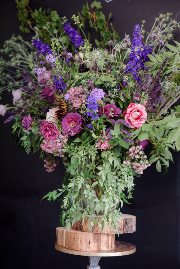 Over the past nine years, Jay has developed a naturalistic flower-arranging style; one that’s loose yet fluid, giving garden flowers the freedom to do their own thing. If one has a crooked stem and wants to bend, she uses that feature as an asset in the design.