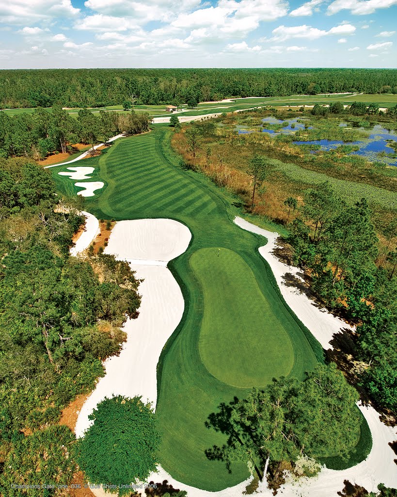 The Fountains is a luxury, secluded, gated development of 80 villas, which is part of the larger ChampionsGate scheme of 900 acres which are set to be covered by 3,200 new homes. Smooth green turf now covers a golf course which was abandoned half-built when the property bubble burst in 2007.