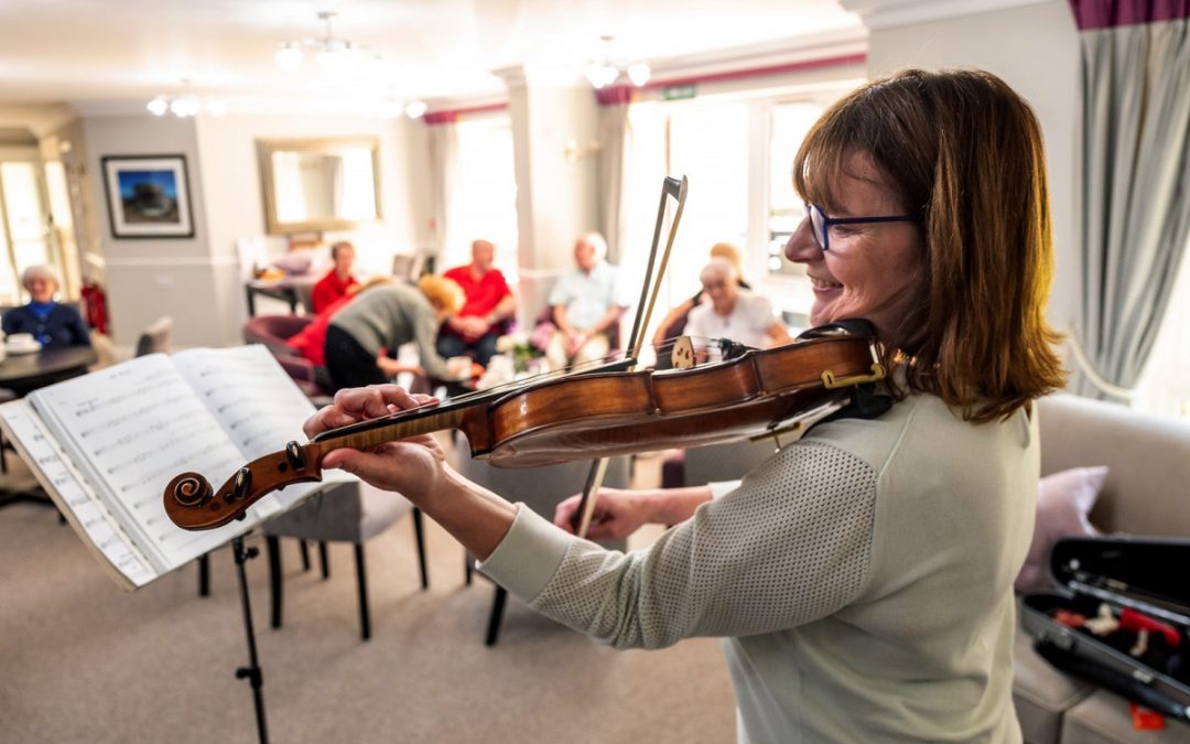 The violist Caroline Harrison is a former co-principal viola for the BBC Symphony Orchestra. During the pandemic, with lockdown restrictions preventing her from playing to a live audience, she reached out to Churchill and offered to perform free of charge via Zoom to anyone who would like to listen.